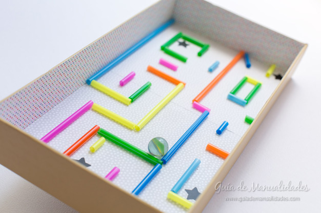 | Este laberinto esta hecho con pajitas de plástico y es ideal para jugar con nuestras cánicas como si de un pitball se tratara. |