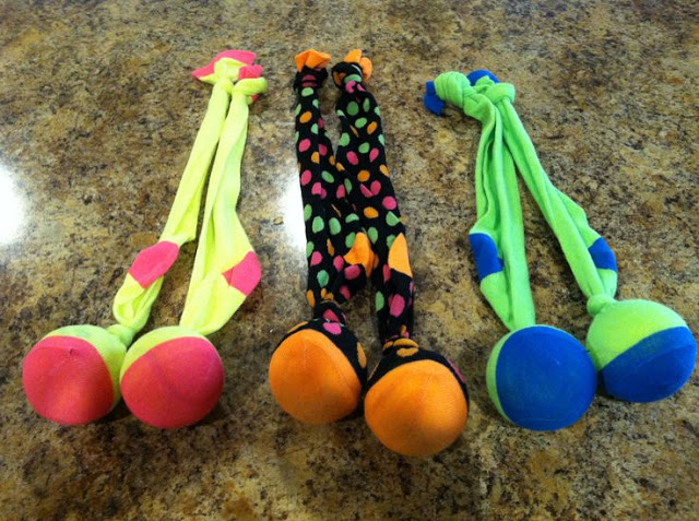 | Podemos elaborarlas de forma sencilla: con pelotas de tenis y unos calcetines viejos |