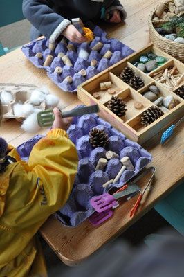 | Tema de transvases: con elementos de la naturaleza o de uso cotidiano, podemos practicar esta actividad que tanto gusta a nuestros niños. |