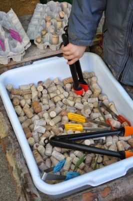 | Pesca de corchos: desarrollaremos la coordinación oculo-manual y la destreza motriz. Dependiendo del tipo de pinza que uséis para «la pesca», dificultareis la actividad. |