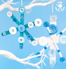 Copoa de nieve, con palos represores o palitos de limpiar las orejas. Si no tenemos ninguno, se puede cortar la forma en cartón y pintar. Decoramos con botones, o tapes de botellas.