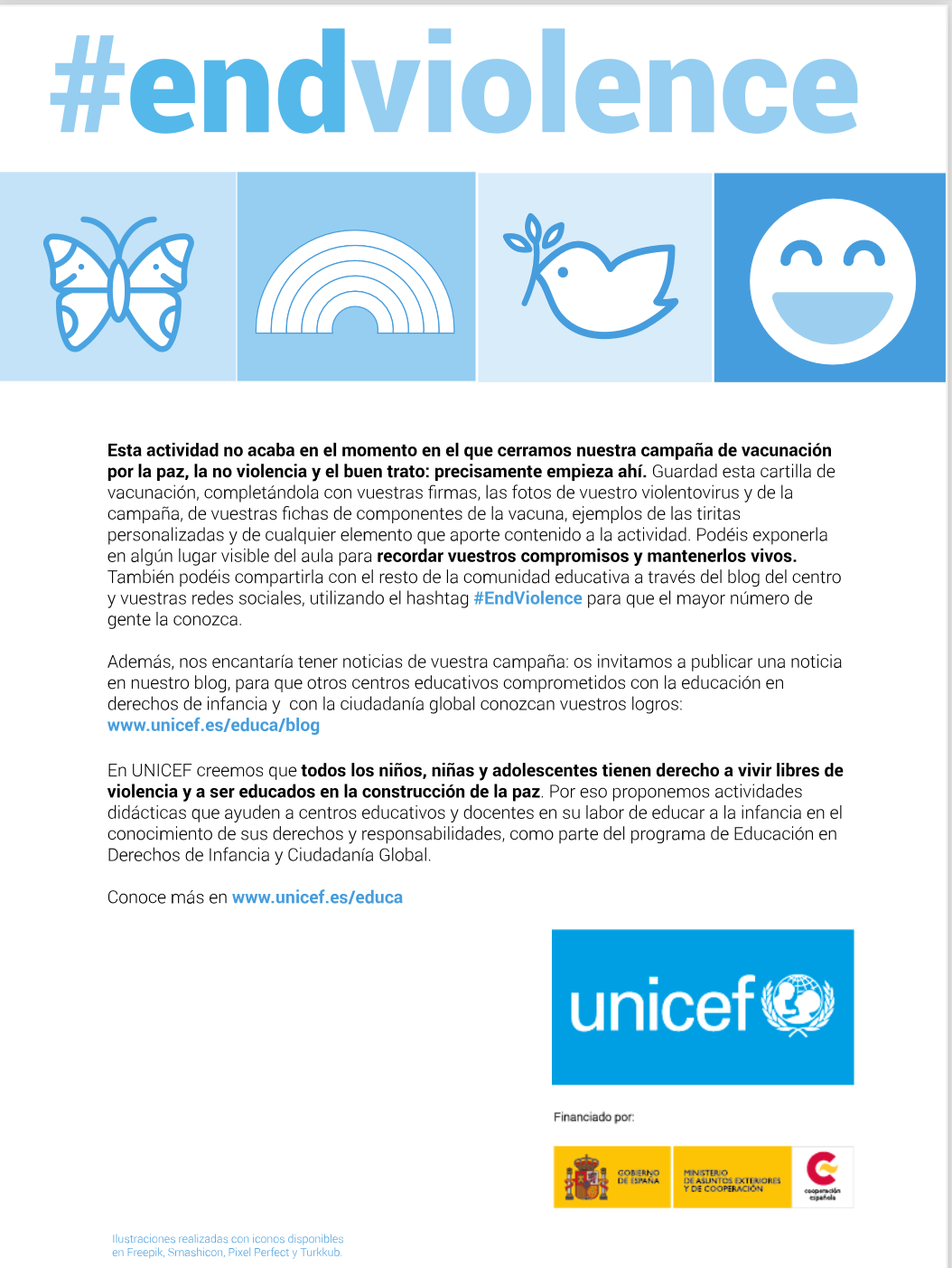La violencia, como los virus, sólo produce víctimas: todos salimos perdiendo cuando estalla. Además, igual que pasa con las epidemias, es mejor prevenir que curar. Este curso te proponemos una movilización escolar en la que elaboraremos entre todos una vacuna de paz y buen trato con la que intentaremos proteger a todo nuestro entorno. Atención que esta es una vacuna muy especial: es una vacuna que no se toma, se piensa. ¡Descúbrela!