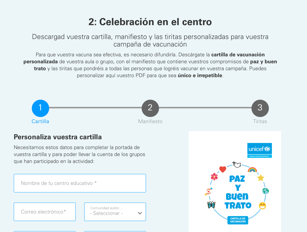 Las cartillas de vacunación y las tiritas ,son personalizadas para cada centro y aula.