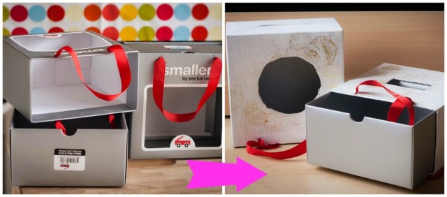 | La versión casera de las «cajas de permanencia», se puede hacer con cualquier caja que tengáis por casa (a ser posible evitando los materiales plásticos). Si es para niños muy pequeños facilitaremos el uso ampliando la abertura de la caja. Es muy importante que se trabaje el concepto de la permanencia completo, es decir, que hagan desaparecer el objeto, abran la caja y localicen el mismo. |