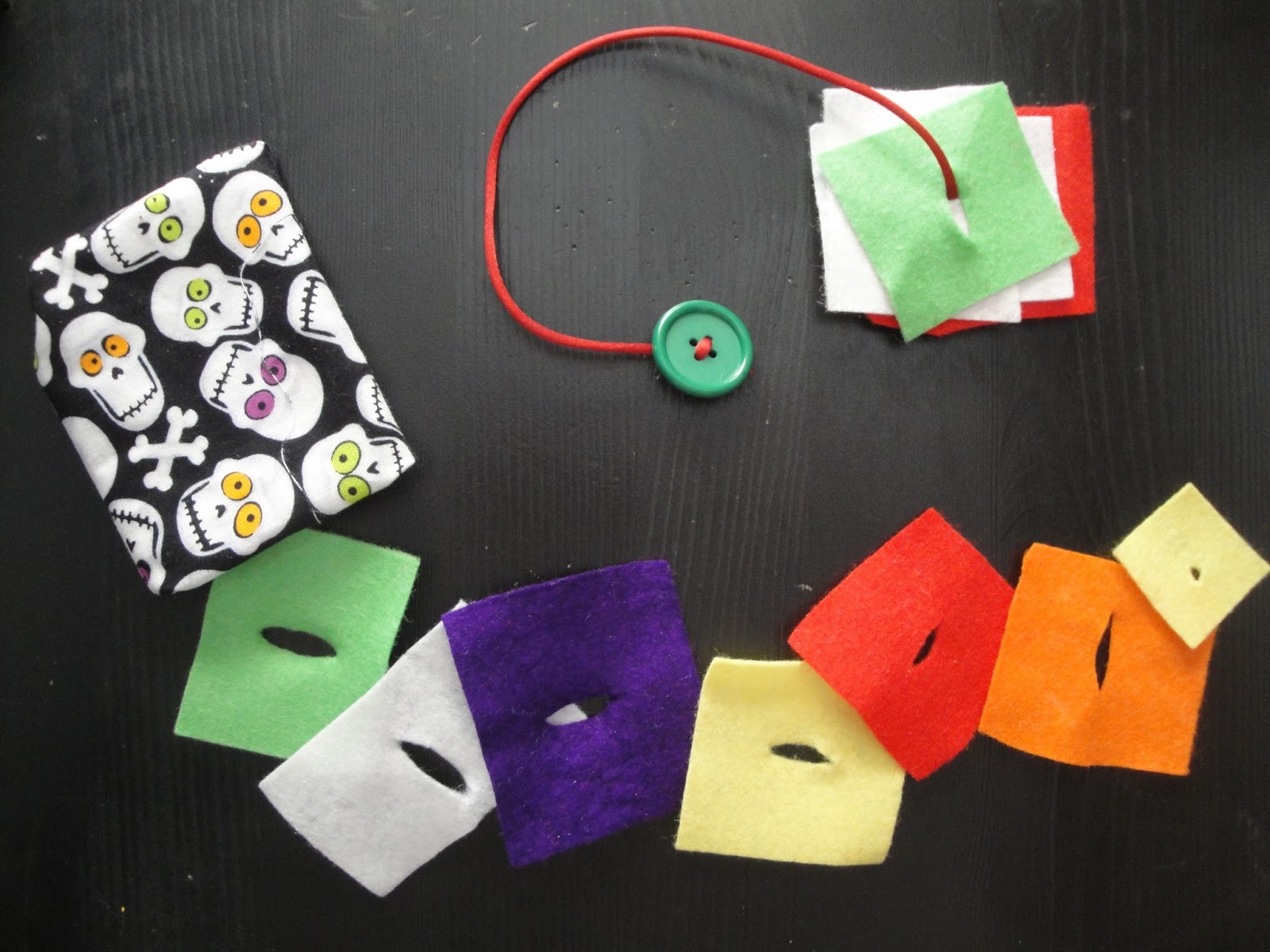 | Insertables, para trabajar la motricidad fina y el concepto de la pinza, usaremos botones grandes, donde insertaremos, como si cosieramos, trozos de fieltro o tela gruesa (cartulina se rompe con facilidad). Según avancen en este concepto, podemos cambiar el botón, por una aguja de plástica larga. |