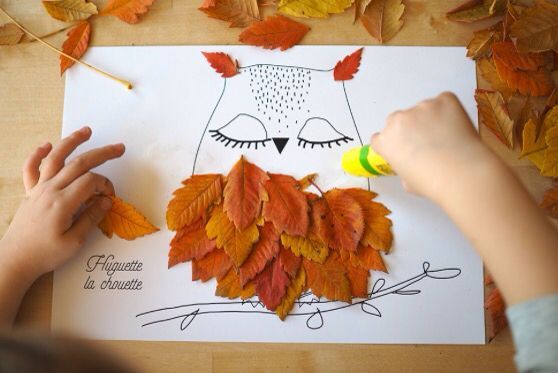 Collage otoñal: Podemos iniciar la actividad, con la recogida de hojas. El siguiente paso es presentarlas en la hoja o cartulina, de forma libre. Finalmente pegamos y podemos decorar, con rotuladores, con pintura de dedos. Si son más mayores, se puede hacer la clasificación de las hojas, buscando en libros o internet a qué árbol pertenece, porque caen y cambian de color, los lugares donde viven esos árboles y las condiciones necesarias…etc.