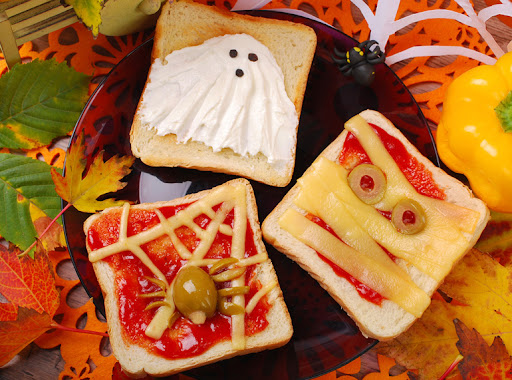 Y para terminar, diferentes modelos de bocadillo en pan blando, con momias, fantasmas y telarañas.