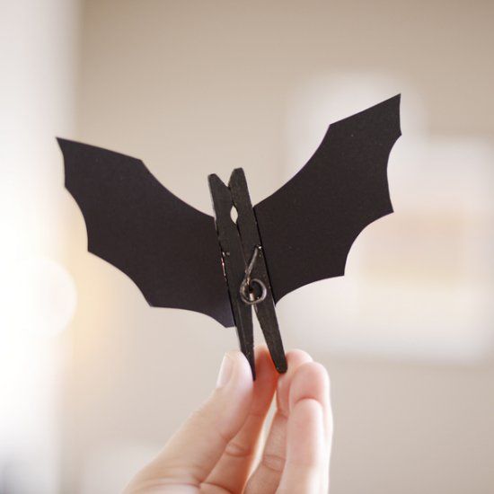Una pinza de madera, que pintamos de negro. Añadimos las alas en cartulina y listo!