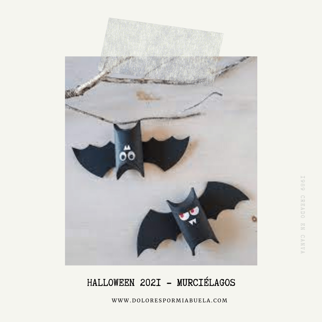 No podía faltar la manualidad con rollos de cartón. Simplemente dibujamos las facciones y añadimos alas. Podemos cerrar la parte inferior con un trozo de cartón pegado. Cerrando con un doble, la parte superior, nos queda una cajita que podemos rellenar con dulces.