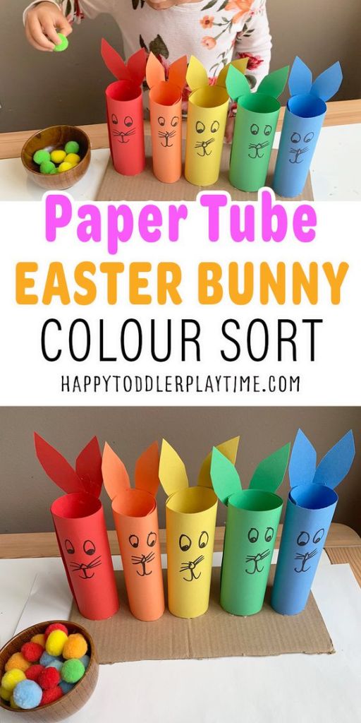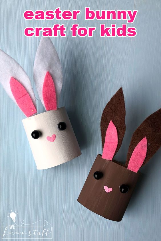 Rollos de cartón que podemos pintar en diversos colores, añadir orejas con cartulina y un pompón de cola.