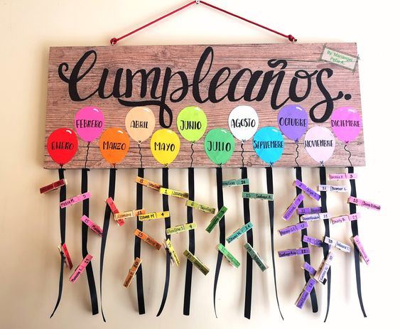 Calendario de cumpleaños, que dependiendo de la edad podemos completar con foto o simplemente con sus nombres.