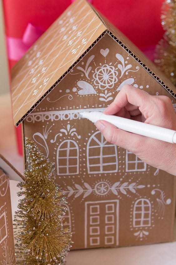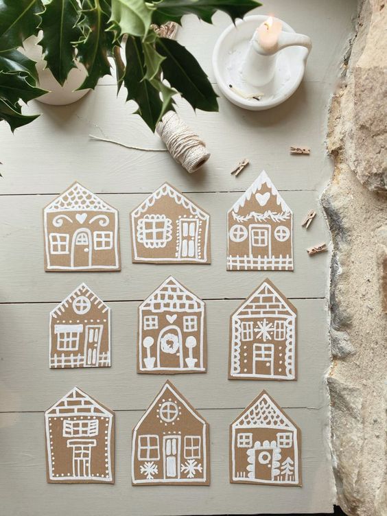 A mi me parece una manualidad sencilla y creativa, con muy poco material y de fácil acceso (papel de estraza o cartón, rotuladores de tiza, o témpera o una pintura o rotulador blanco), os dejo algunas ideas….
