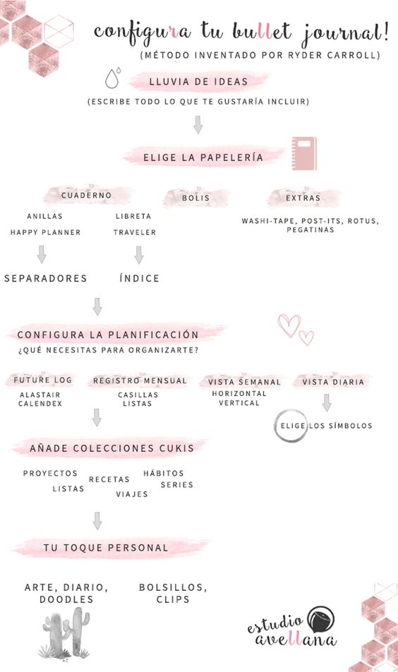 Un bullet journal es un método de organización personal desarrollado por el diseñador Ryder Carroll. El sistema organiza la programación, los recordatorios, las listas de tareas pendientes, la lluvia de ideas y otras tareas organizativas en un solo cuaderno.