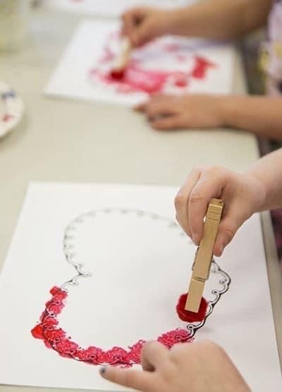 Actividad para hacer en el aula o en cas. Con un pompón y una pinza de madera. Una forma diferente de pintar.
