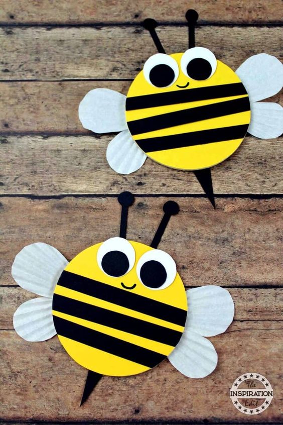 No pueden faltar las abejas, estas de gomaeva o cartón y las alas de moldes de magdalenas.