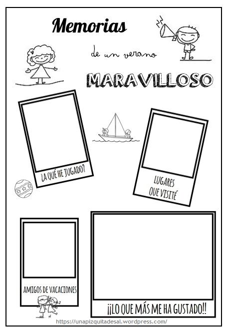 Para ello, os dejo unas fichas, para rellenar. Podemos dinamizar esta actividad, de diferentes maneras, dependiendo de la edad y del grupo: haciendo que nos las cuenten a los demás alumnos, buscando a compañeros que hayan hecho actividades similares durante el verano, otorgándoles colores, según nuestro rango de emoción respecto a la actividad, escenificando algún momento concreto del verano que nos haya gustado especialmente…etc.
