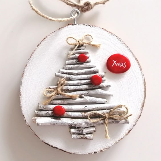 La forma redondeada, nos lleva directamente a pensar en adornos, tipo bolas, para el árbol de navidad. Pueden ser mini coronas o collage que completamos con otros materiales de reciclaje como pueden ser palos, hojas o piedras…