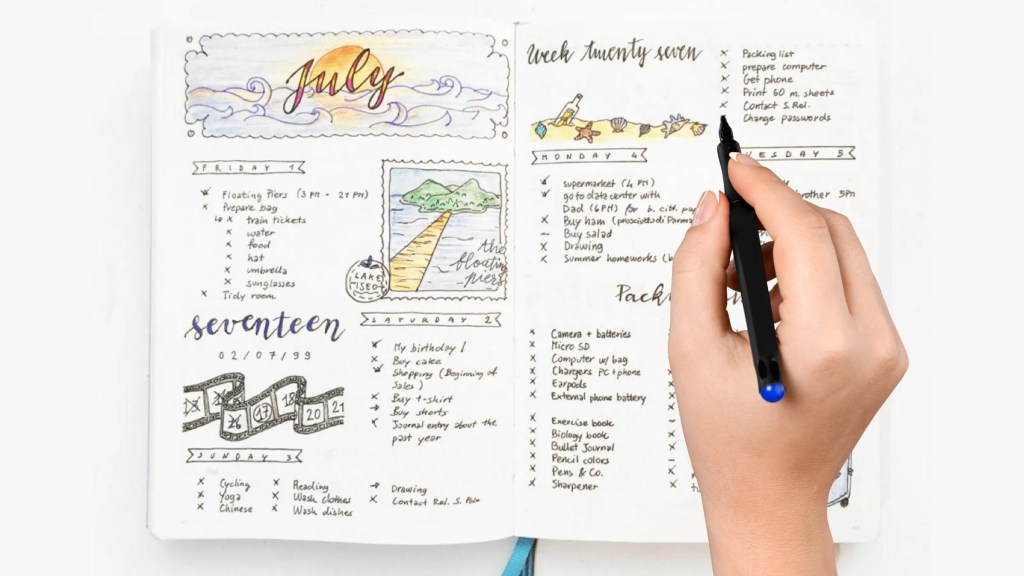 - El bullet journal puede ser tan simple o detallado como quieras. Si disfrutas de realizar dibujos, pintar o decorar en general, es tu oportunidad para expresar toda tu creatividad. Si el arte no es tu fuerte, ¡tranquilo! El objetivo del método Bujo es que ante todo sea funcional, no bonito. Recuerda: si te abruma, no sirve.