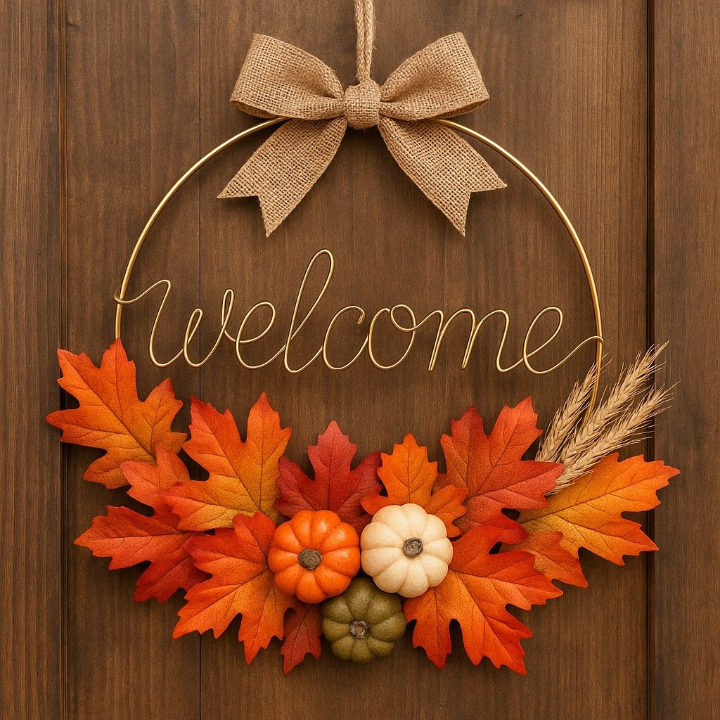 Una corona de otoño es una decoración circular que se utiliza para embellecer el hogar durante la temporada de otoño, representando la transición natural, la abundancia de la cosecha y el cambio de estación. Se elabora con materiales de temporada como hojas, ramas, piñas, calabazas y flores, en tonos cálidos y terrosos.