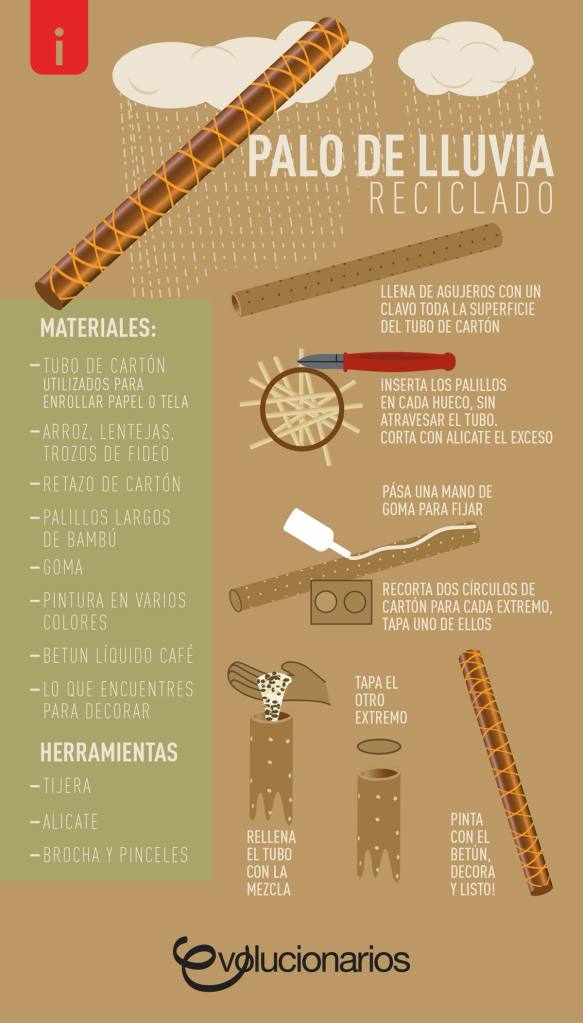 - El «relleno»: El tubo se rellena parcialmente con semillas, piedras pequeñas, guijarros o arroz.